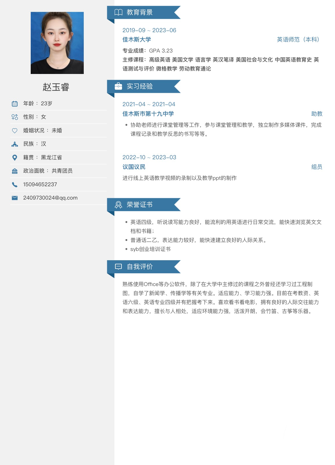 期望职位:初中英语教师|期望地区:保定市,沈阳市,大连市