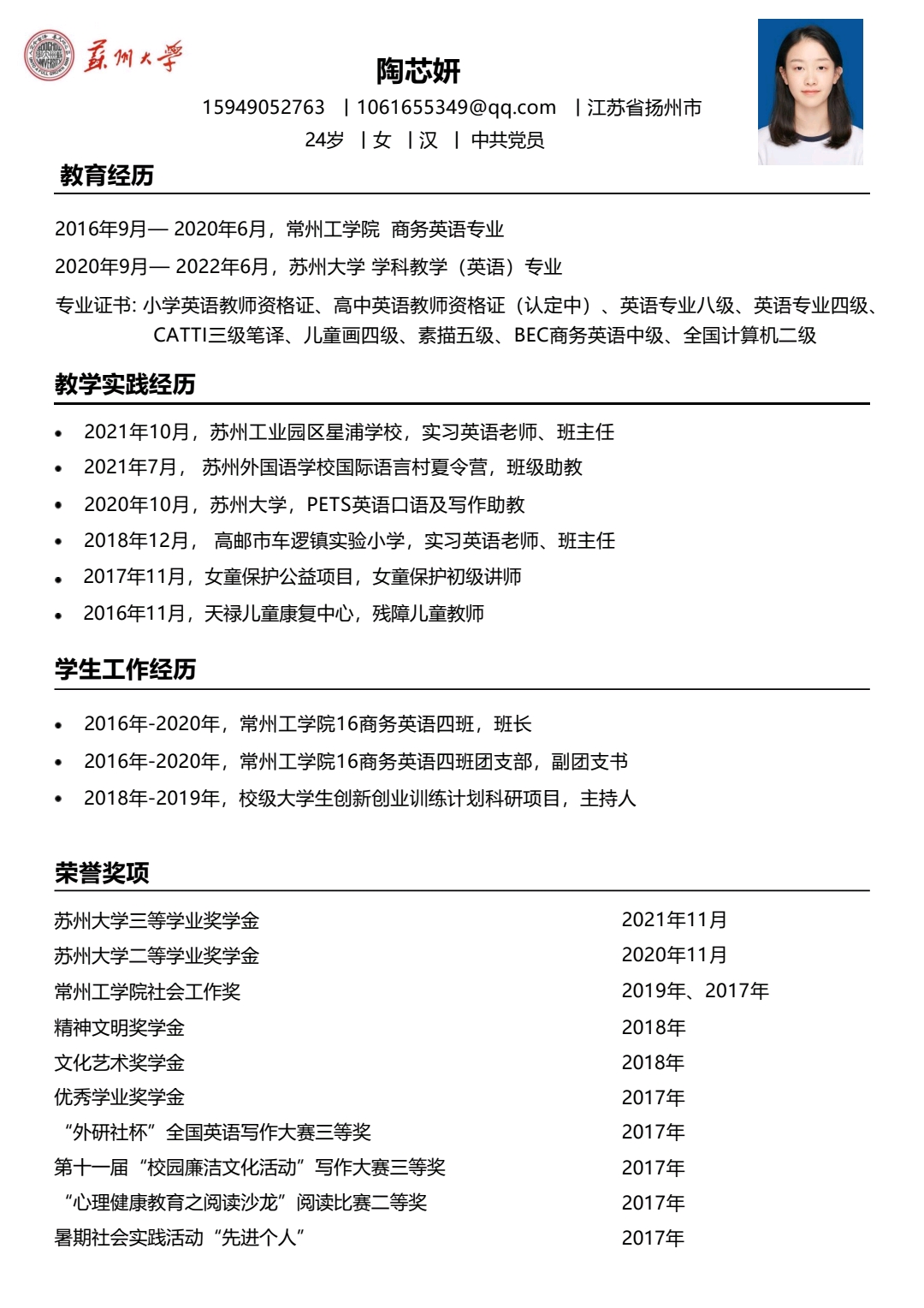 期望职位:初中英语教师,小学英语教师|期望地区:南京市,苏州市,杭州市