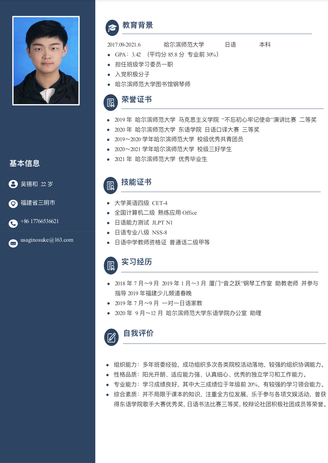 期望职位:高中数学教师|期望地区:南京市