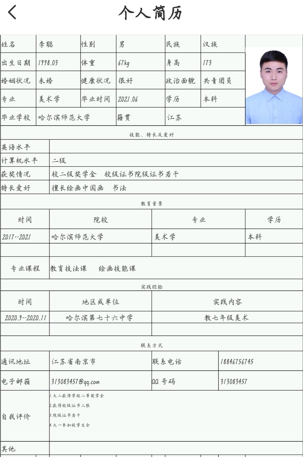 期望职位:初中美术教师,美术教师,高中美术教师|期望地区:徐汇区,浦东新区,青浦区