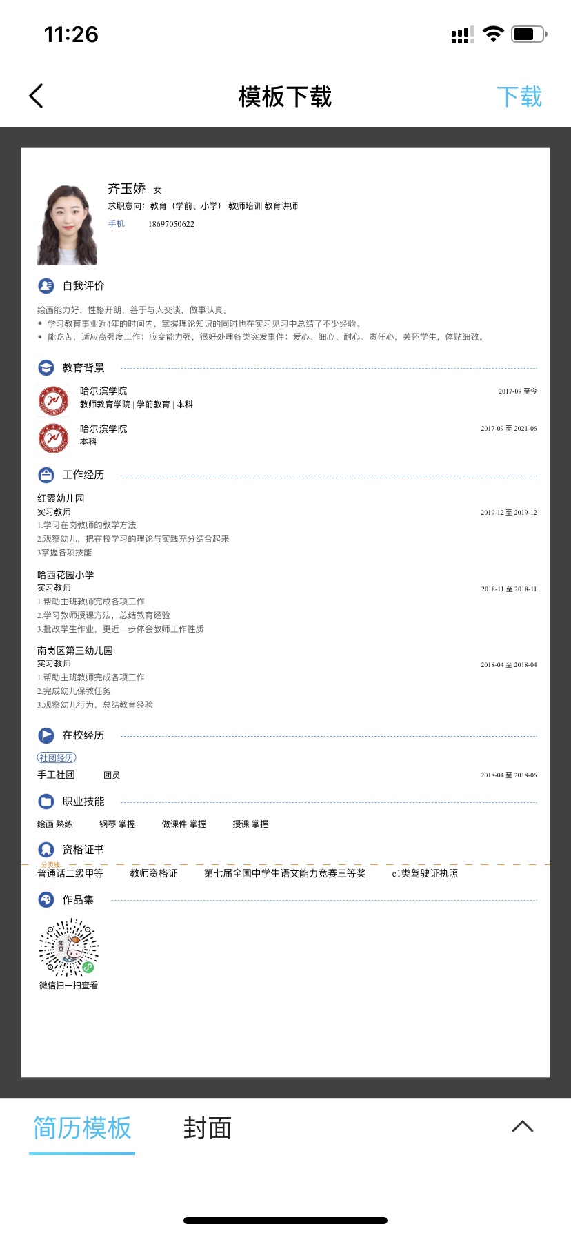 期望行业:幼儿园,小学|全职|5K~8K/月|应届毕业生