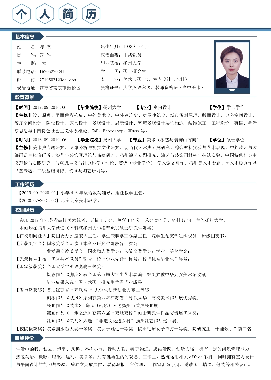 期望职位:美术教师,高中美术教师,初中美术教师,事业单位工作人员|期望地区:南京市