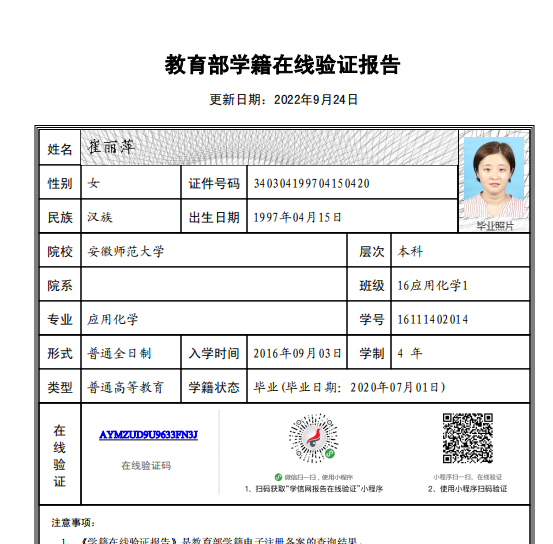 2020-09 至 2023-06 | 硕士 | 化学