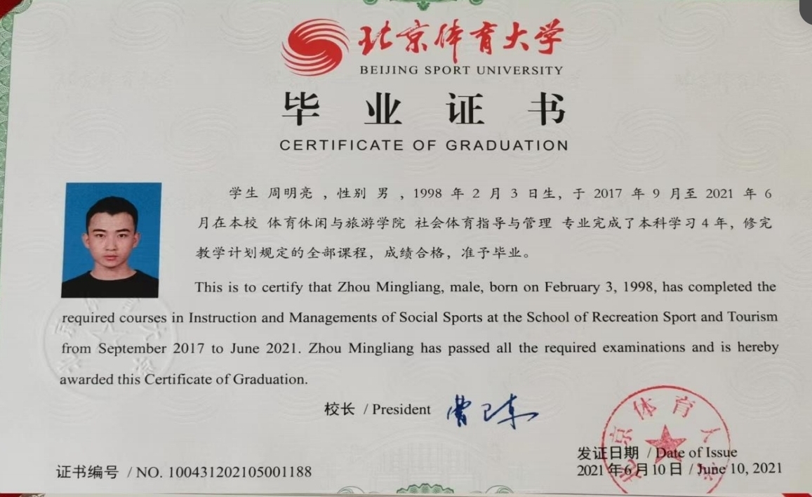 2017-09 至 2021-06 | 本科及以上 | 社会体育指导与管理