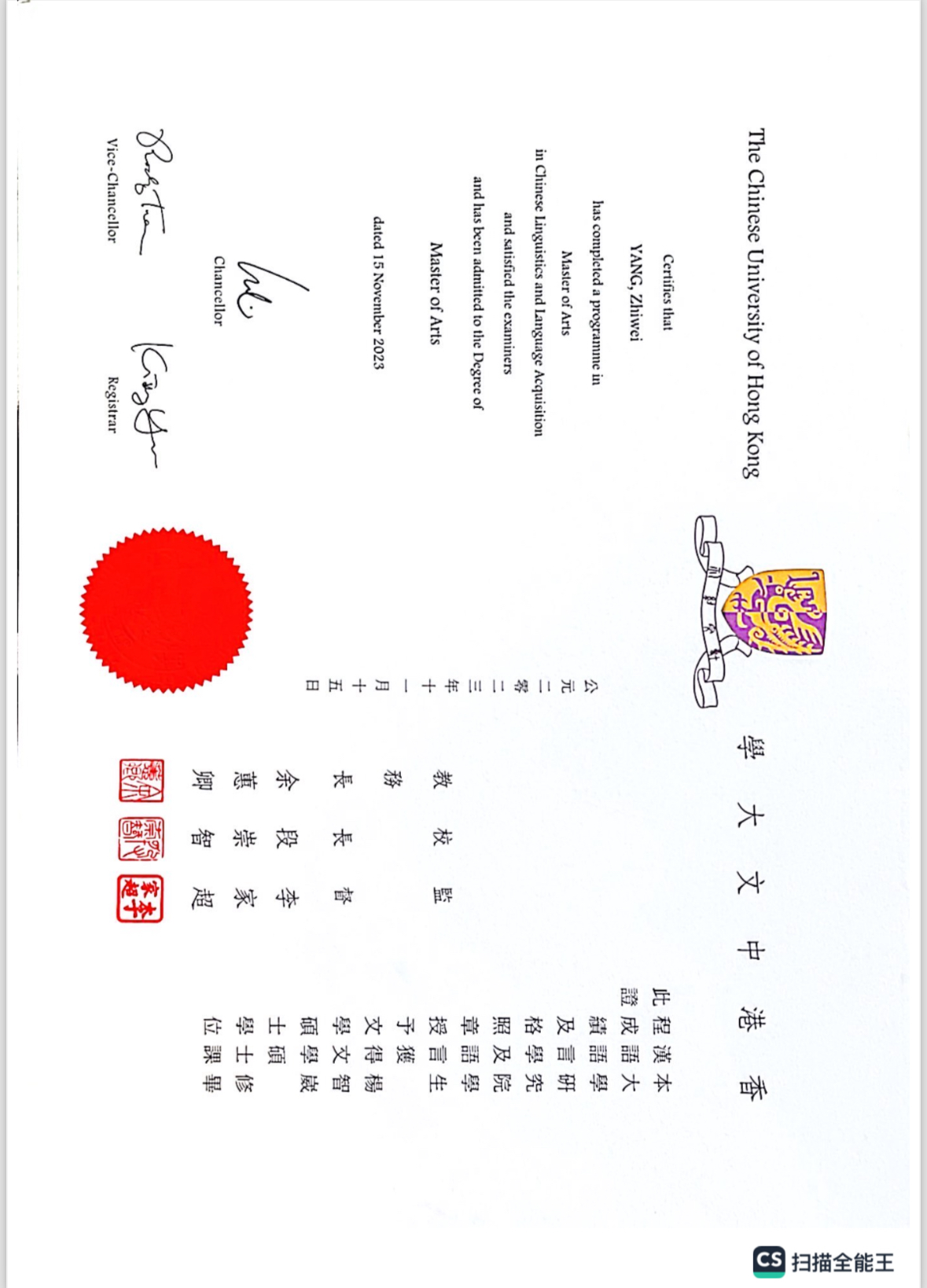 2022-08 至 2023-11 | 硕士 | 汉语语言学
