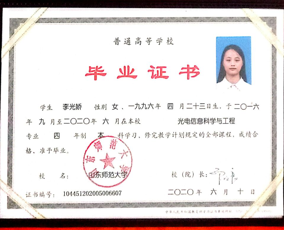 2016-09 至 2020-06 | 本科及以上 | 光电信息科学与工程